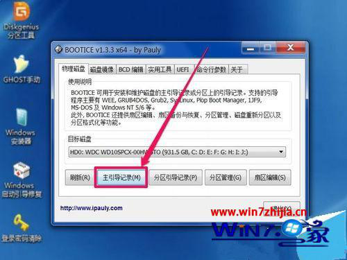 4、选择好硬盘后,在下面,点击“主引导记录”这个按钮;