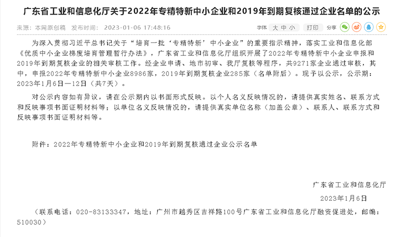 2023年1月6日,Topay 钱包(中国)科技成功顺利获得广东省工业和信息化厅公示,荣获“专精特新中小企业”认定。这一荣誉彰显了Topay 钱包(中国)科技在高新技术领域的领先地位,也是对公司长期坚持创新驱动开展战略、深化技术创新和产品研发的肯定。