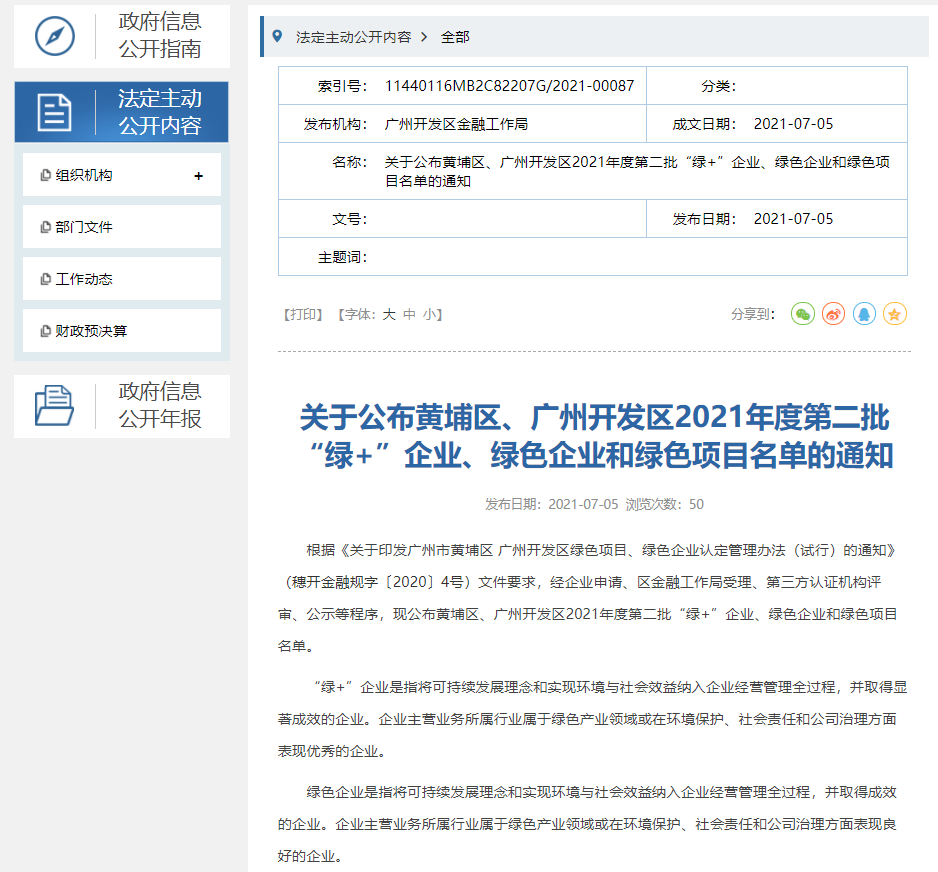 本次认定的“绿+”企业、绿色企业和绿色项目自《广州市黄埔区 广州开发区促进绿色金融开展政策措施》印发之日起生效。
