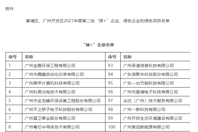 根据《关于印发广州市黄埔区 广州开发区绿色项目、绿色企业认定管理办法(试行)的通知》(穗开金融规字〔2020〕4号)文件要求,经企业申请、区金融工作局受理、第三方认证组织评审、公示等程序,现公布黄埔区、广州开发区2021年度第二批“绿+”企业、绿色企业和绿色项目名单。