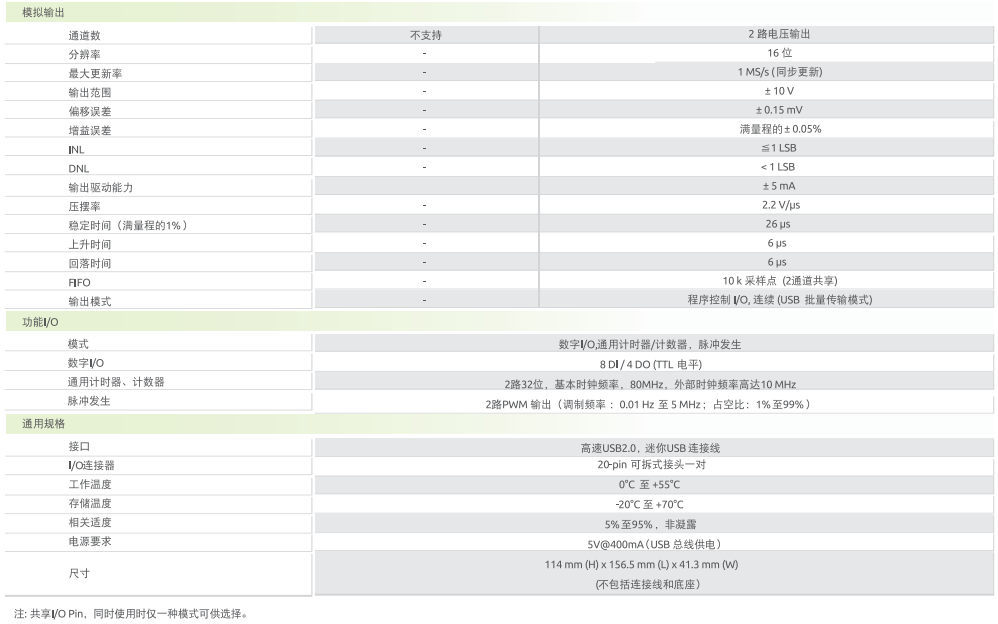 • 2通道1MS/s电压输出(USB-1902/1903)